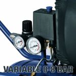 Der 2-Zylinder Luftverdichter sorgt für eine große Ansaugleistung. Das praktische Schauglas zur Ölstandskontrolle und die ablesefreundlichen Manometer sorgen für zusätzliche Anwenderfreundlichkeit.