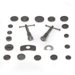 Das 22-teilige Bremskolbenrückstell-Set besteht aus je einer Spindel mit Rechts- und Linksgewinde. Mit den 17 Adapterplatten können