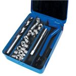 Includes everything to repair female threads in steel, cast iron and aluminium. Sprung insert coils create a stronger thread than the original metal. Kit includes HSS tap, twist drill, coil driver, tang remover and spare inserts.