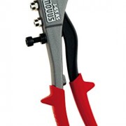 Arbeitsbereich: Bis 5 mm Ø Alu und bis 4 mm Ø Edelstahl. Zangengehäuse aus Aluminium-Druckguss mit geschmiedeten Chrom-Vanadium-Stahl-Zangenschenkeln. Schmaler Zangenkopf für schwer zugängliche Nietstellen. Zwischenhebelsystem reduziert Kraftaufwand und bewirkt